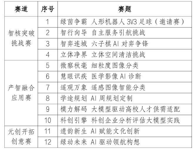 北京市大学生“人工智能+”创新大赛由北京市教育委员会主办,北京工业大学承办,旨在推动人工智能与多领域深度融合,培养具备技术创新与交叉应用能力的高质量人才。本次大赛设三大赛道,共12个赛题,覆盖AI技术攻关、行业应用及创新创意方向。