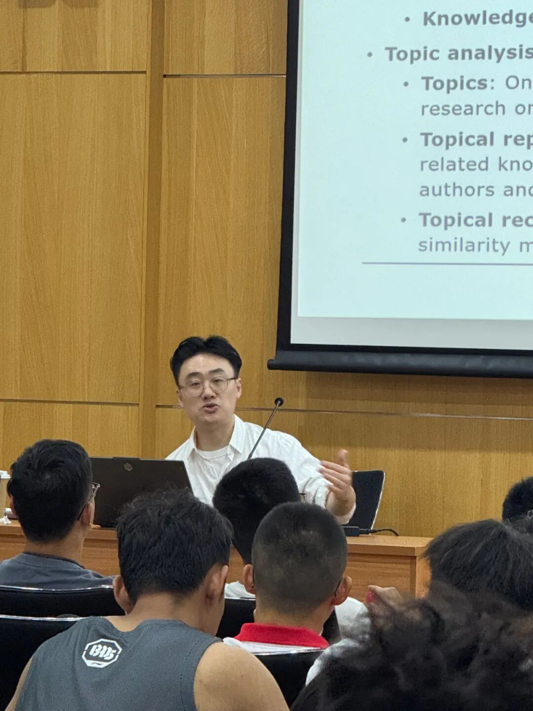 讲座中,张嶷副教授围绕知识重组的核心概念展开系统讲解,深入剖析其在科学研究与技术开发中的融合价值,并针对当前该领域面临的三大挑战进行了详细解读:一是“社会-技术系统”因涉及多重实体导致建模难度大;二是高低阶关系中的潜在信息未被充分挖掘利用;三是深度神经网络的“黑箱”特性使得预测结果缺乏可解释性。这些分析精准点出了领域内的关键痛点,引发了在场师生的深刻思考。