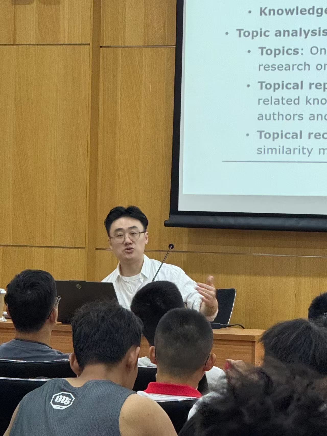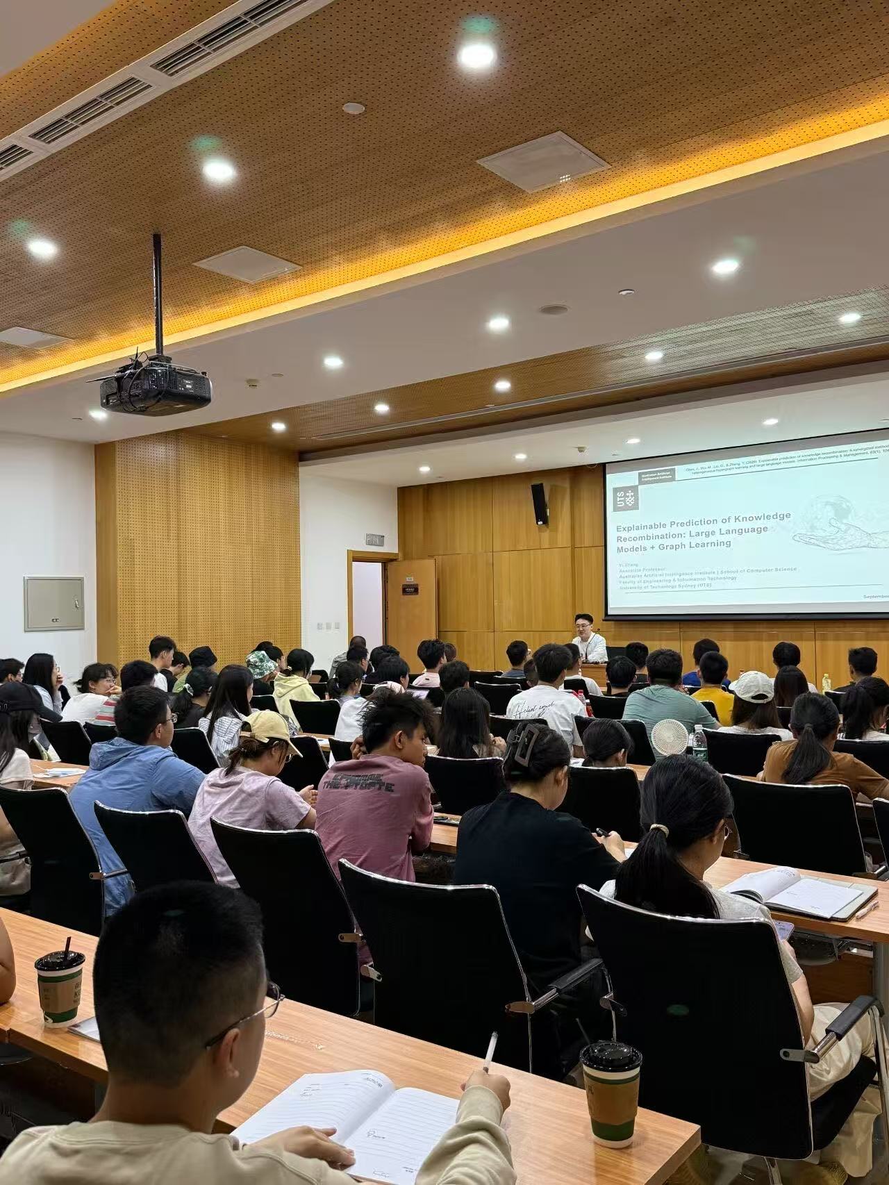 9月14日下午,首都经济贸易大学人工智能学院特邀悉尼科技大学计算机学院、澳大利亚人工智能研究院张嶷副教授,举行主题为“知识重组的可解释预测:大语言模型+图学习”的学术讲座。本次讲座由武装教授主持,学院师生共同聚焦人工智能与知识管理交叉领域的前沿,现场学术氛围浓厚。