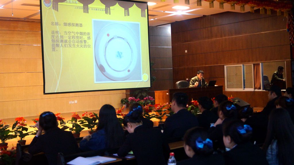 李少辉向各位老师介绍了在日常工作中常用的消防知识和法规,随后展示了我校近期的几次火情以及总结的经验,最后针对我校实际情况向各位老师演示了常用的消防设备设施的使用方法和注意事项。