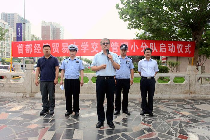孙善学在讲话中指出,首经贸地区交通管理小分队的成立,进一步加强了学校与相关部门的联系,实现校园周边交通、环境秩序治理常态化。同时学校还将配合进一步完善道路安全设施和标识,将人员管理与技术管理相结合,做好校园“门前三包”,加强对学校师生的交通安全教育,引导师生遵守交通规则,为出行安全提供有力保障。