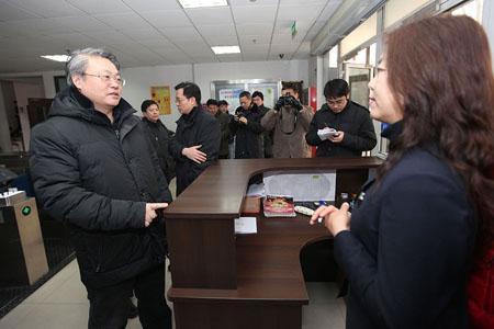 在四号学生公寓,孙善学和孙昊哲一行详细询问了寒假期间公寓值班情况,现场检查了消防控制和实时监控等消防安全设施。当得知公寓供暖情况良好,并根据毕业生参加实习离校较晚的情况进行了专门布置,孙善学和孙昊哲给予了肯定。