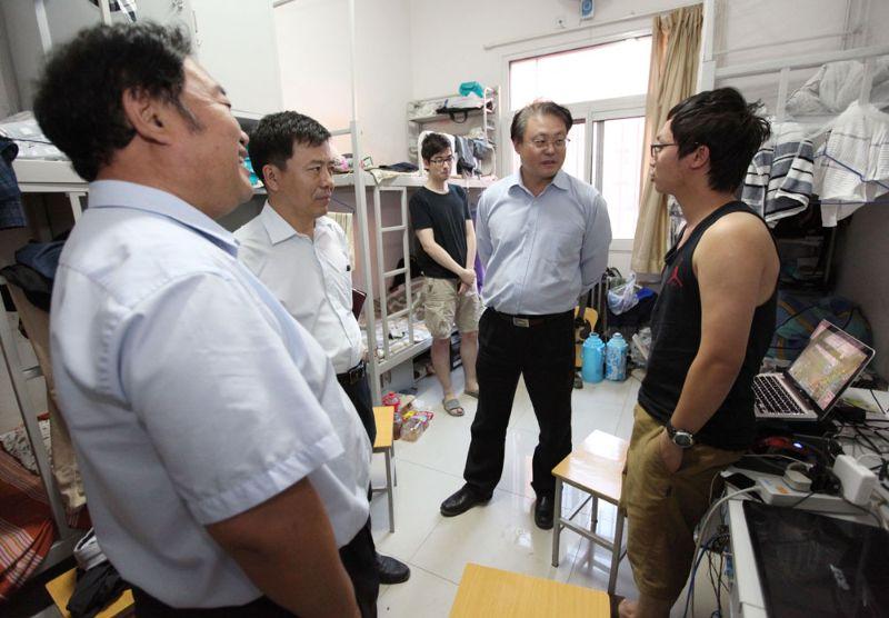 在4号学生公寓,孙善学、孙昊哲听取了学生宿舍安排和运行情况,要求相关负责人要深入一线,切实了解学生情况,加强学生宿舍区管理,确保同学们度过一个安全祥和的假期。孙善学、孙昊哲还走访了辅导员和学生宿舍,与学生亲切交谈,耐心询问了留校学生假期学习安排,嘱咐学生注意寝室用电安全,叮嘱留校学生假期注意人身安全。