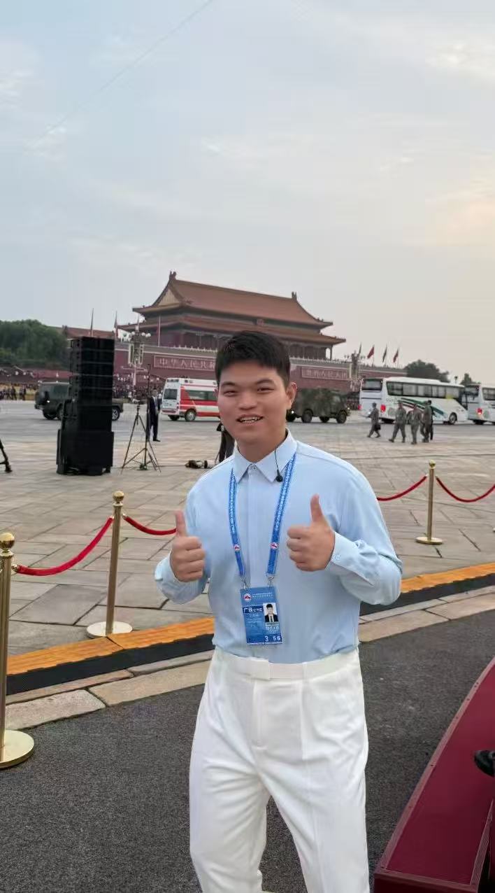 作为阅兵志愿者,一路的筹备与值守,是青春里最难忘的 “淬炼”。烈日下演练应急物资分发,凌晨 4 点便到岗布置站点,那些看似枯燥的重复,都在仪式当天有了意义。当受阅方阵迈着铿锵步伐踏过长安街,战机组成壮丽队形掠过天际,广场上的欢呼与掌声震彻云霄,我攥着对讲机的手微微发紧,心底满是难以言喻的自豪。更难忘与队友们并肩的日子:冒雨搬运物资、互相替岗补位,让我读懂 “团结” 的重量。这场经历,不仅让我触摸到祖国的强大,更明白 “守护” 二字的深意 —— 这是属于我们这代青年,与祖国共赴的庄严之约。
