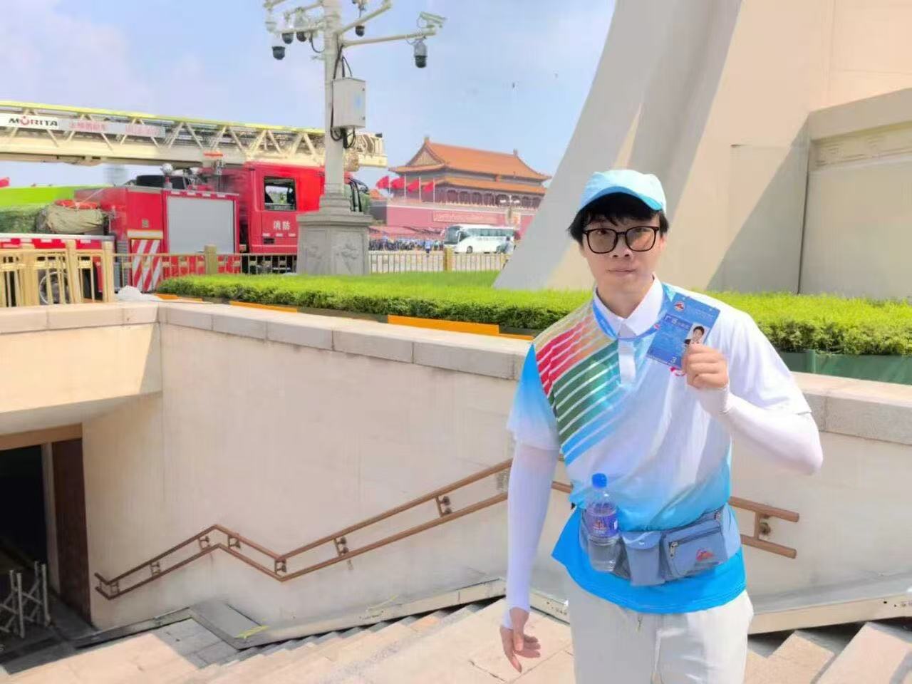 晨光从人民大会堂檐角漫下时,广场上的人潮被旭日染成金色,风掠过蓝色志愿马甲。三个小时里,指尖被酸梅汤的瓶盖磨得发烫,递水时见过老人摩挲瓶身标语、学子举相机对准广场中央、轻声念着 “人民必胜”。仪式开始后退守隐蔽点看直播,小国旗猎猎作响,当 “和平必胜” 的呐喊传来,广场掌声雷动,掌心冒汗的我眼眶发热,这份激动与自豪将一生在我的记忆里发光发烫。