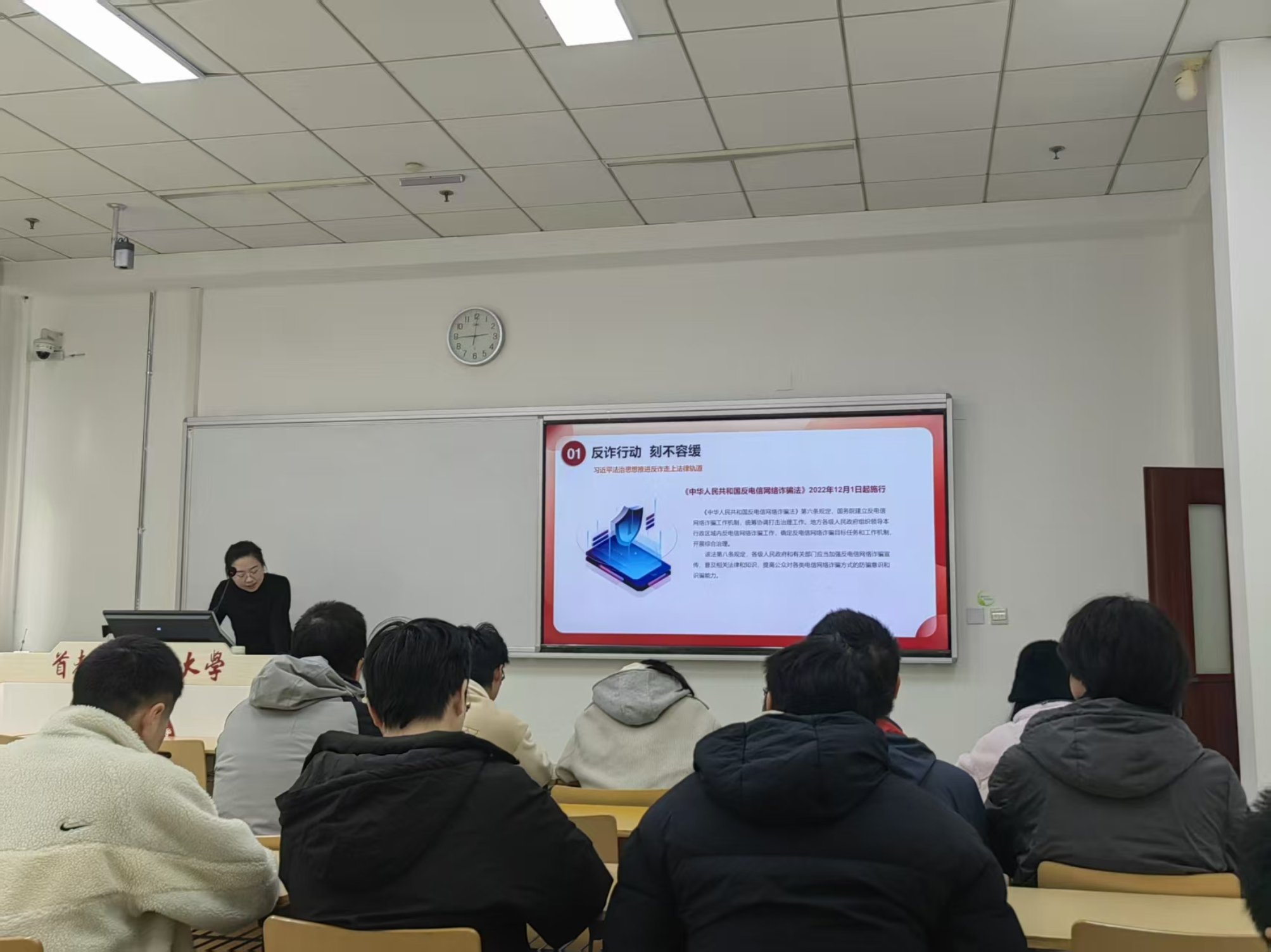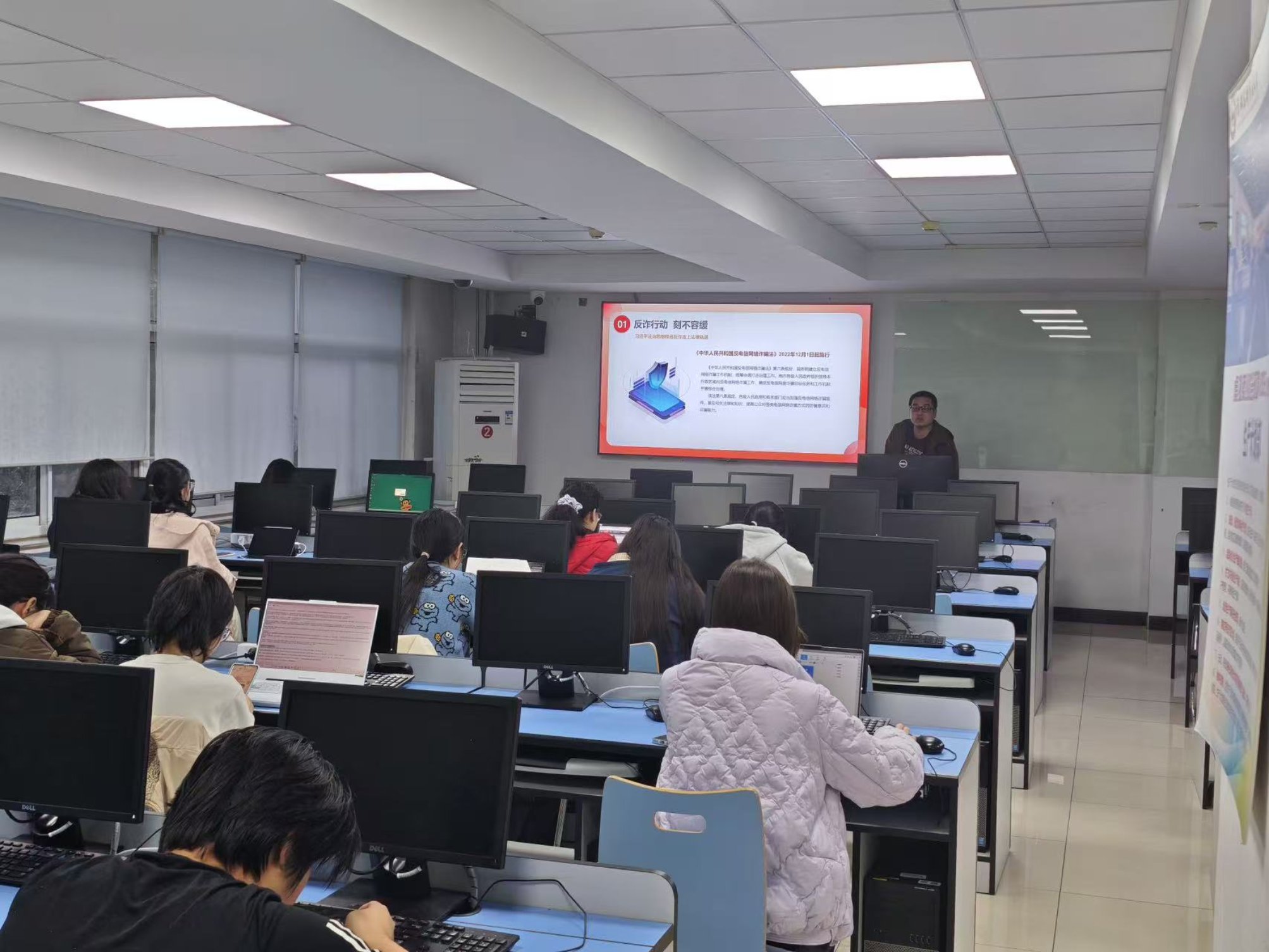 此次以各班为单位有序展开的主题班会将法律解读与案例警示相结合,理论引导与实践提醒相统一,有效填补了同学们在反诈知识中的认知空白。未来,人工智能学院还将持续推进反诈宣传常态化,构建“教育+防范+监督”的反诈工作体系,全力守护学生财产安全与校园清朗环境。
