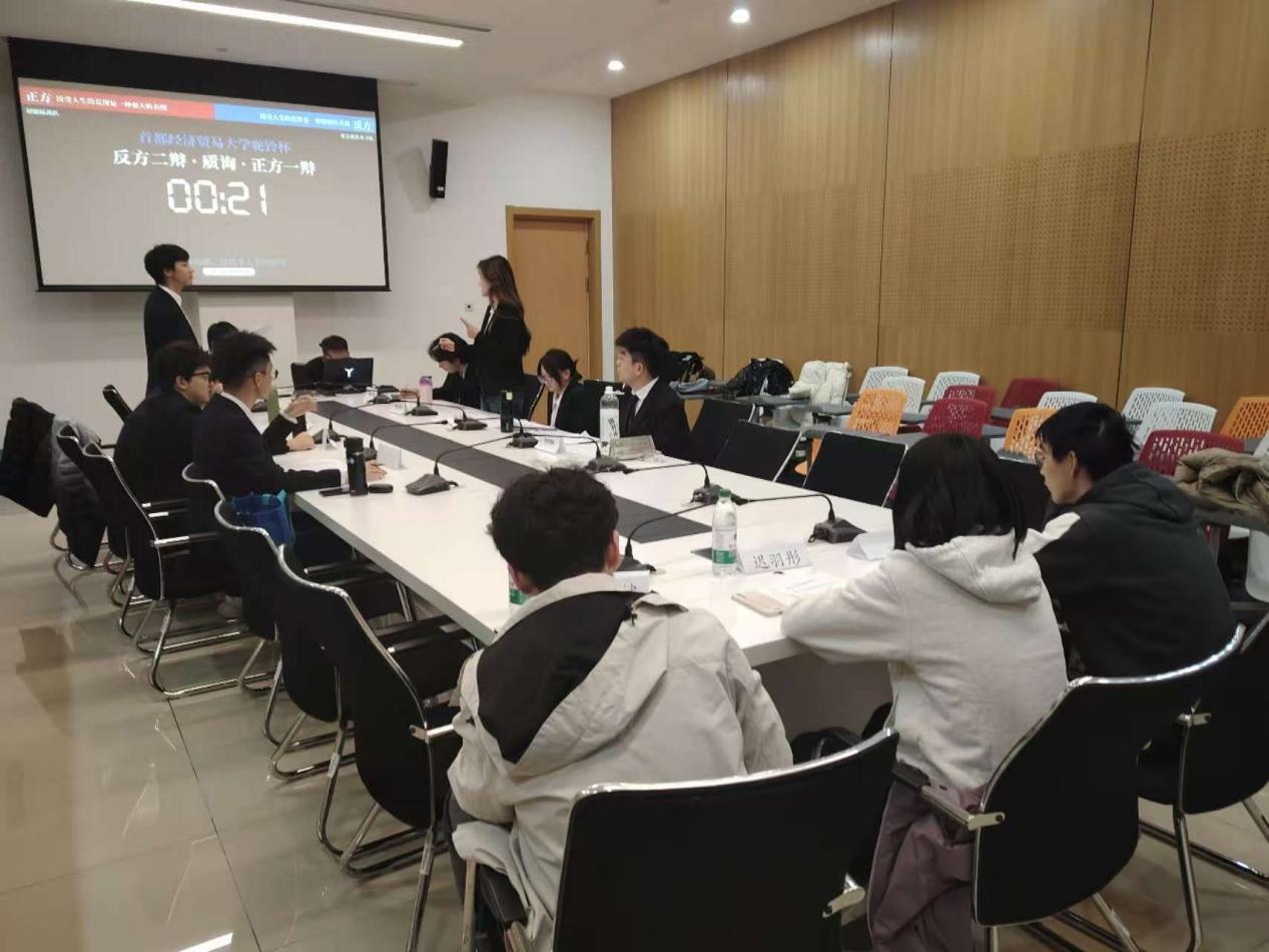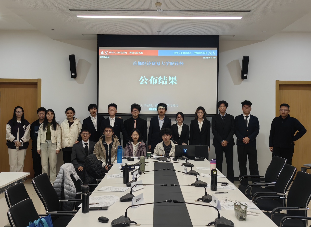 2025年11月4日,首都经济贸易大学人工智能学院举行新生辩论赛决赛,各班辩论队选手初入校园,散发着青春的活力、带着必胜的信心来到了现场。此次比赛旨在锻炼学生的逻辑思维和语言表达能力,在丰富校园文化生活的同时培养团队精神、提高心理素质,帮助学生了解社会热点话题、增强社会责任感。人工智能学院的多支队伍参与其中,辩题紧跟时事,极具现实意义。决赛现场气氛紧张而热烈。正方超能陆战队所持观点为“接受人生的荒谬是一种强大的表现”,他们从理论层面出发,开篇立论、逻辑清晰。反方爱会消失对不队则坚定“接受人生的荒谬是一种懦弱表现”的立场,陈词慷慨、寸步不让。